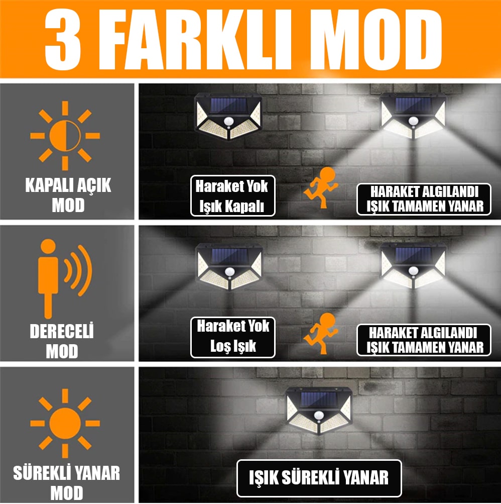 3 Adet 120 LEDLİ SENSÖRLÜ SOLAR LAMBA -