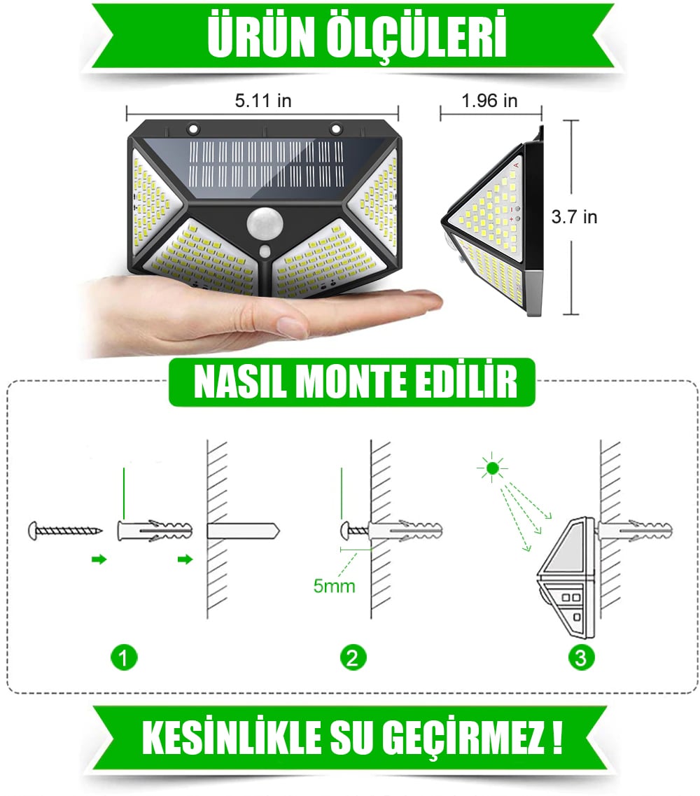 5 Adet 120 LEDLİ SENSÖRLÜ SOLAR LAMBA -